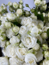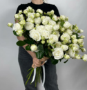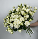 Букет состоит из 9 кремовых кустовых роз высотой 70 см. Такой размер и количество цветов делают его заметным и привлекательным.