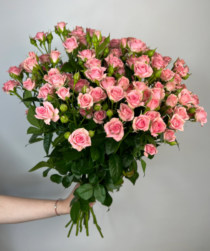 Розы кустовые Грация, из которых состоит букет, отличаются своей нежностью и красотой. Их розовый цвет придаст вашему подарку особую изысканность и элегантность. Букет состоит из 17 кустовых роз, что делает его достаточно объемным и привлекательным. Высота букета составляет 50 см, что позволяет ему выглядеть впечатляюще и вызывать восхищение. Букет собран на стеблях, что придает ему естественность и живость.