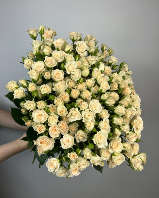 Букет из 31 кустовых роз Крем Грация станет отличным выбором для тех, кто хочет сделать особенный подарок на любой праздник или торжество.