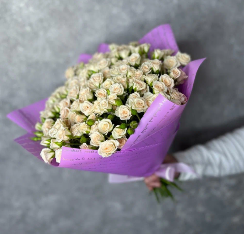 Букет из 31 кустовых роз Крем Грация – это стильный и элегантный подарок, который подойдет для любого повода.