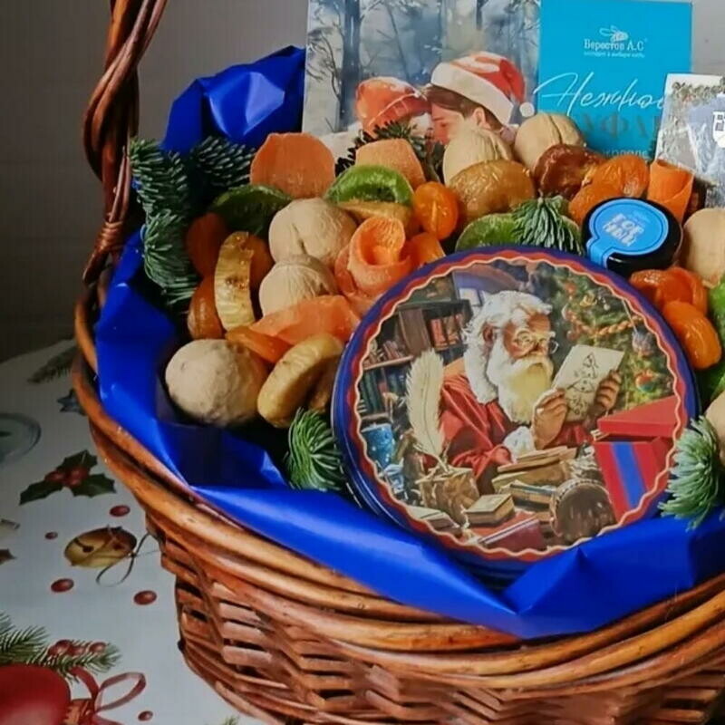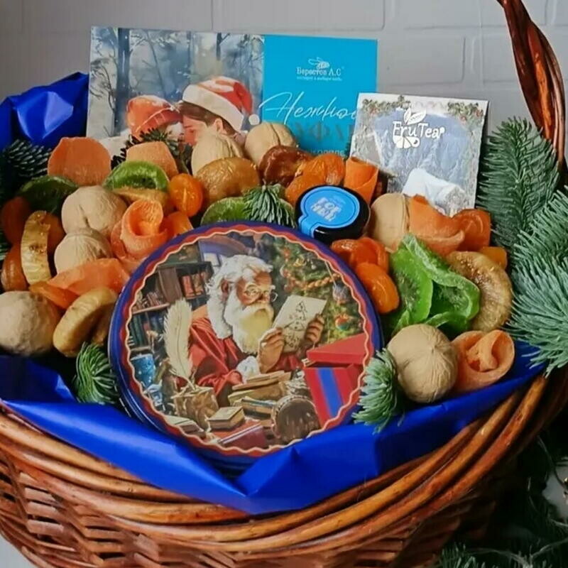 - Подарочная корзина с сухофруктами, чаем и сладостями Новогодняя корзина Подарок на новый Год