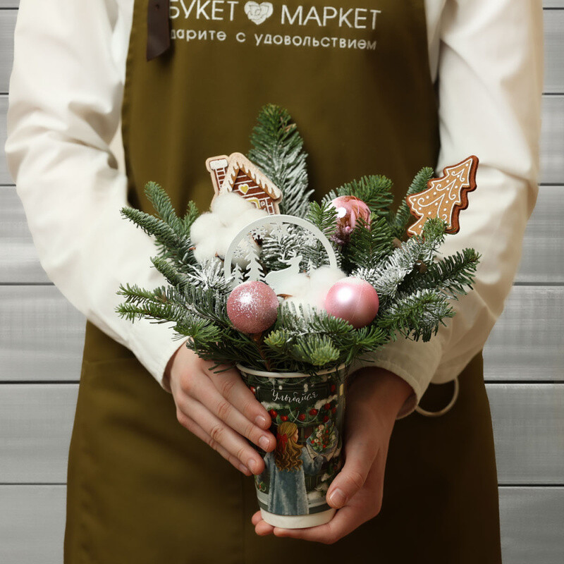 Новогодняя композиция в стакане №15