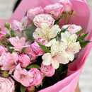 Букет «Букет кустовых роз и альстры» — это гармоничное сочетание элегантной альстромерии и пышной кустовой розы. Изящная композиция, которая подойдёт для любого случая и понравится каждому. Отличный выбор для выражения ваших чувств и пожеланий
