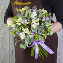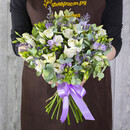 Совершенно очаровательный, одухотворённый, по-французски стильный и утончённый букет создан из синих фрезий, лазоревого лимониума и белоснежных лизиантусов. Этот цветочный комплимент в духе романтики Прованса, без сомнения, мечтает получить любая девушка. Порадуйте вашу непревзойдённую и любимую таким вдохновляющим сюрпризом, поднимающим настроение и дарящим ваши искренние чувства.