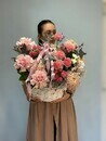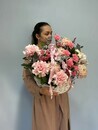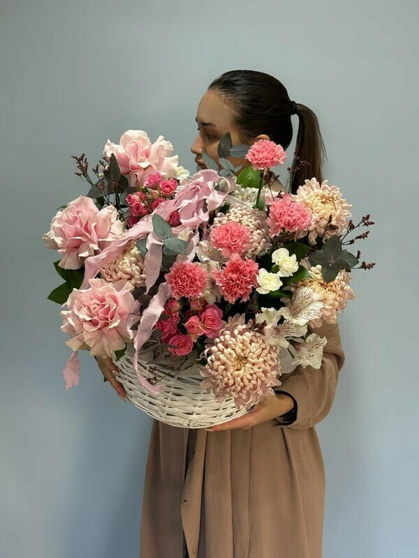 Кустовые розы, изобилующие мелкими бутонами, воплощают бесконечность любви и радости, которыми хочется поделиться с любимым человеком. Гвоздики, с их элегантностью и тонким ароматом, символизируют верность, преданность и глубокую привязанность. Альстромерии привносят игривость и легкость, олицетворяя дружбу, заботу и поддержку. Хризантемы добавляют композиции величественности и глубины, символизируя долголетие, процветание и благополучие. Французская роза, как кульминация ансамбля, выражает романтику, страсть и признание в любви.