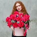 11 малиновых эквадорских роз в шляпной коробке, стандартный