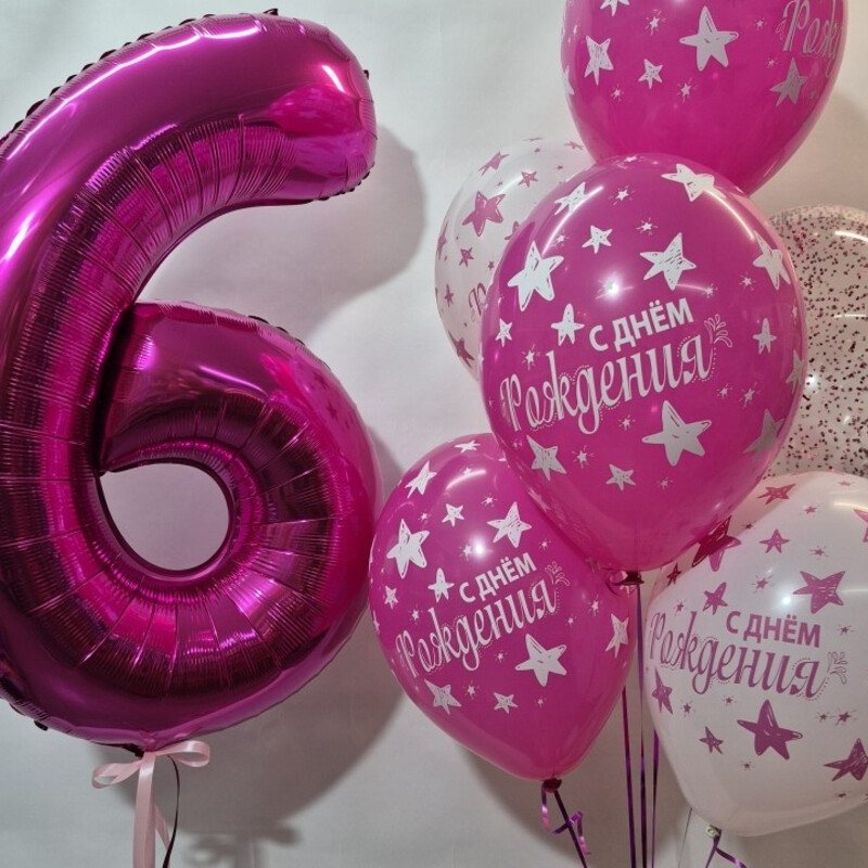 - Набор шаров с цифрой 6, шары с гелием, шары на день рождения
