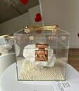 Жемчужное ложе: Россыпь искусственного жемчуга на дне куба подчёркивает женственность, чистоту и драгоценность момента. Жемчуг служит благородным фундаментом для главного символа любви.