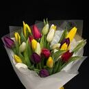 Букет из 25 тюльпанов микс в оформлении, букет из 25 тюльпанов микс в оформлении