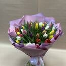 - Букет из 51 тюльпана микс в оформлении