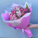 - Букет из 7 розовых альстромерий в дизайнерском оформлении 40 см