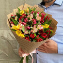 - Букет из 15 альстромерий микс в крафте 60 см