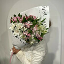 - Букет из 13 бело-розовых альстромерий в дизайнерском оформлении 55 см
