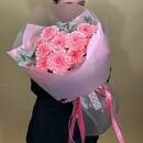 Букет розовых хризантем с эвкалиптом
