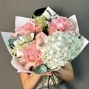 Букет с французскими розами, белой гортензией и альстромерией, стандартный