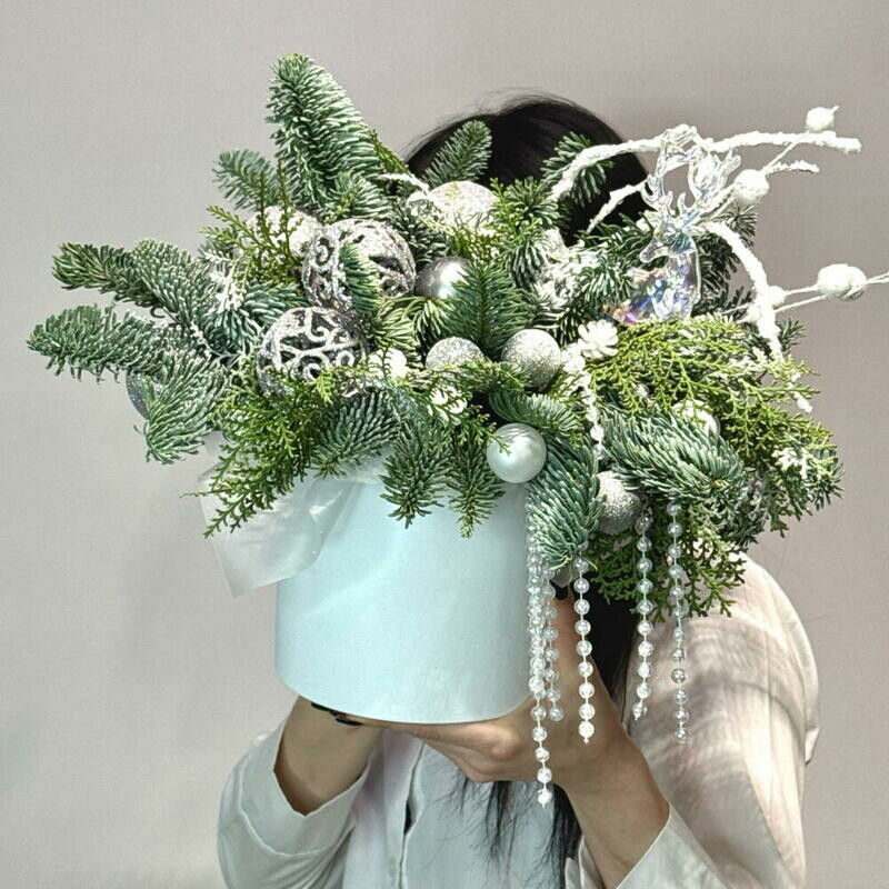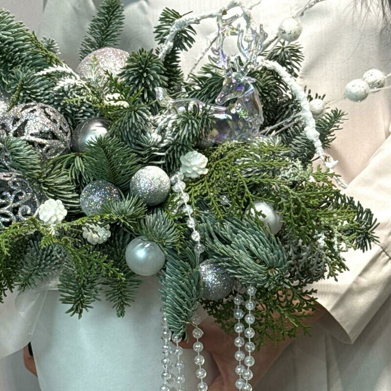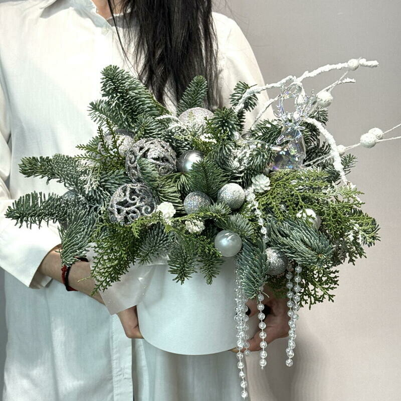 - «Snezhnij vihr_» kompozitciya s el_yu Nobilis i elochnimi sharami, podarok na Novij god