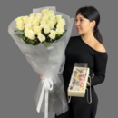 - tcveti Buket iz 25 Gollandskih 90 sm roz + klubnika v shokolade