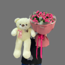 - Buket «Syurpriz s mishkoj» — kustovie rozi i evkalipt