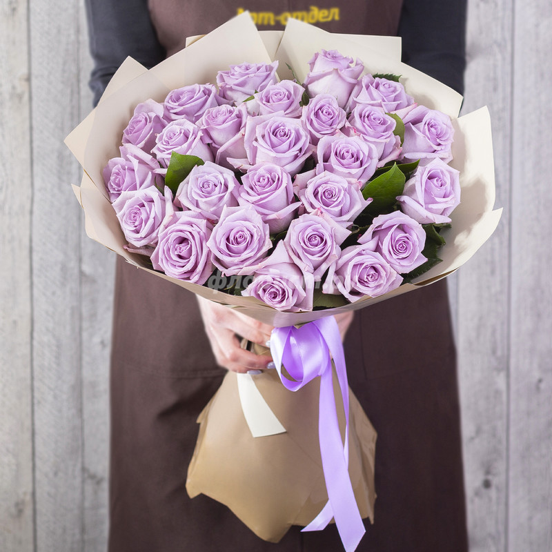These premium lilac roses bear the very romantic name "Ocean Song". Such a bouquet was created for romantics. What could be more mysterious and beautiful than roses of such an amazing color? Their buds are large and beautifully rounded.