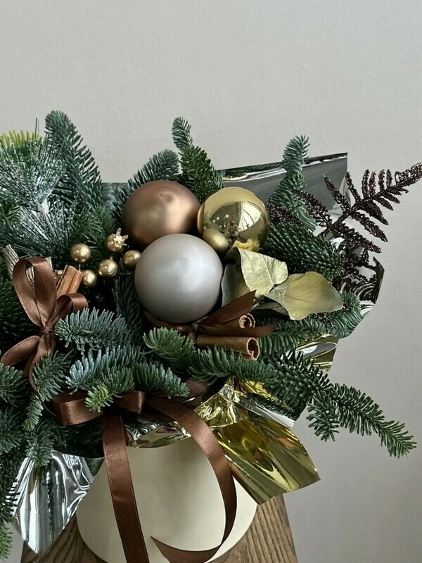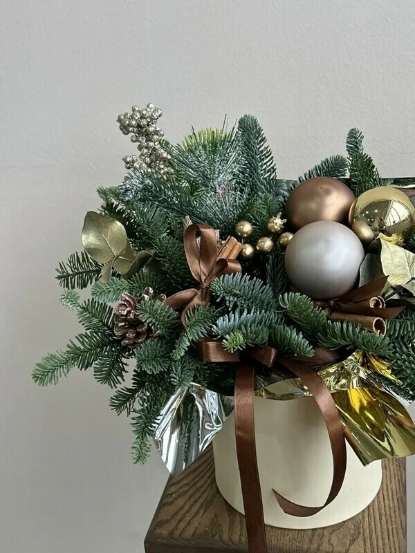 - Novogodnyaya kompozitciya v shlyapnoj korobke «Siyanie»