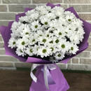 Buket iz kustovoj beloj hrizantemi v stil_noj upakovke. Ideal_no pohodit dlya podarka mame, babushke, lyubimoj zhenshine