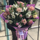 Prekrasnoe, nezhnoe sochetanie tyul_panov, eustomi, al_stromerii i gvozdik. Tyul_pani v bukete- vesna v dushe