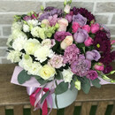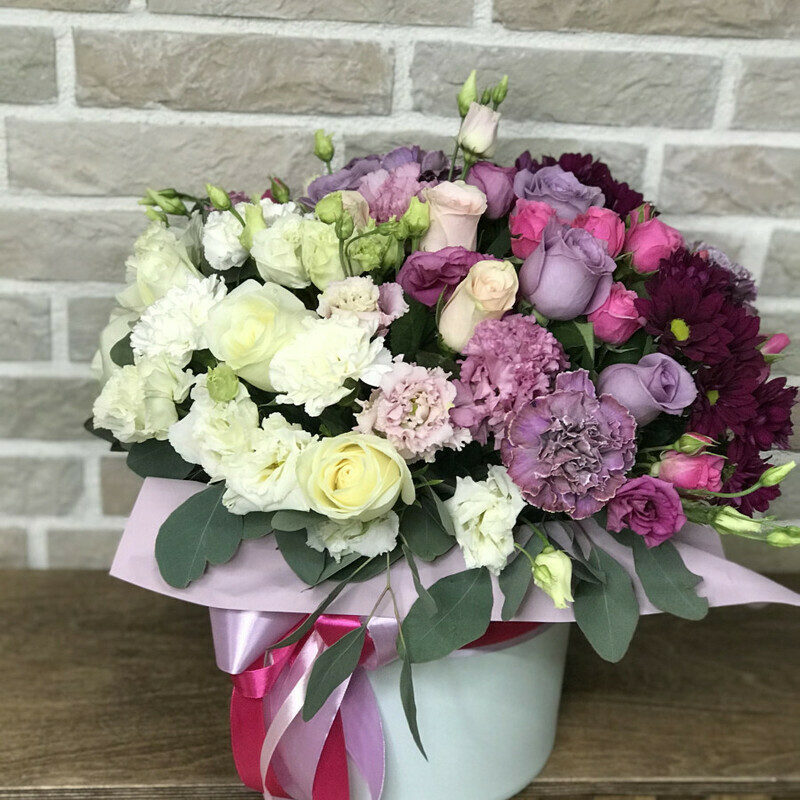 Roskoshnaya Kompozitciya v shlyapnoj korobke. Gradient ot temnogo k svetlomu podchyorkivaet krasotu kompozitcii v tcelom