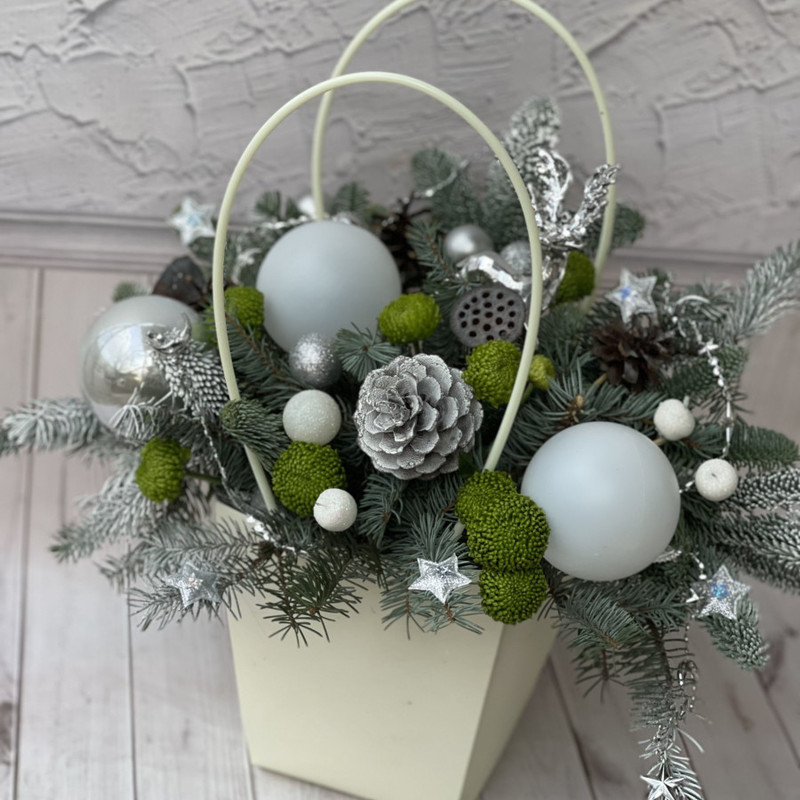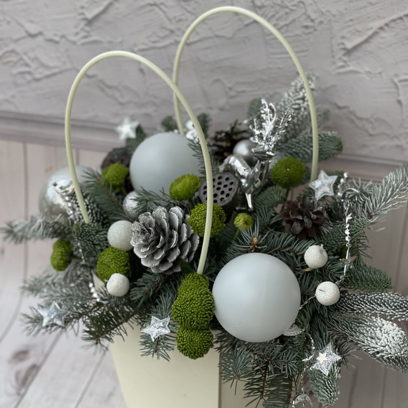Kompozitciya iz nobilisa, ukrashennaya novogodnim dekorom poveet v vashem dome nastroeniem prazdnika