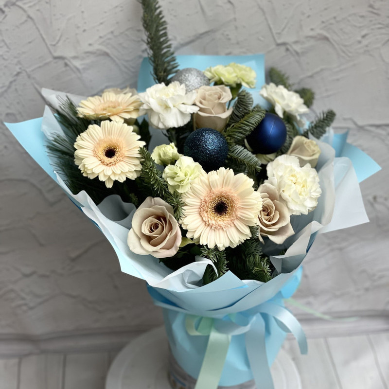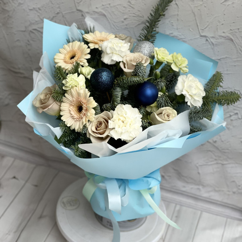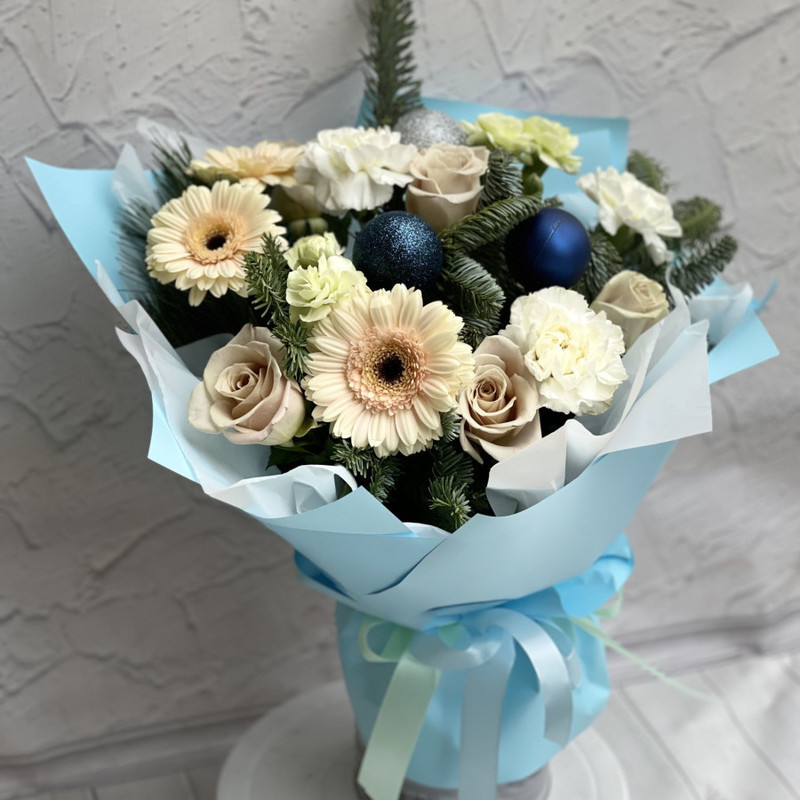 Zimnij buket iz nobilisa, roz, Gerber, diantusov