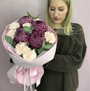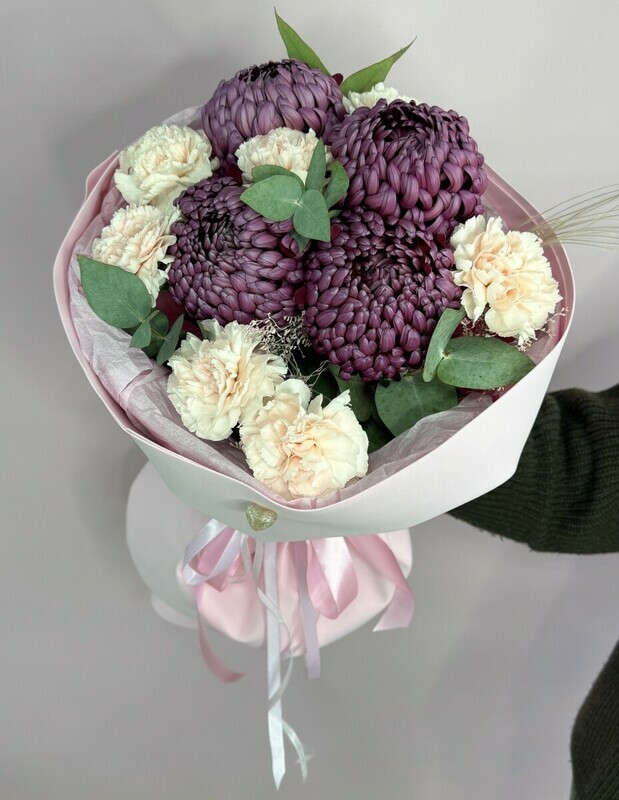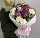 Buket iz hrizantem bigudi i diantusov