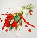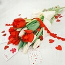 Buket iz 11 krasnih i belih tyul_panov. TCveti na 8 marta dlya mami, kollegi