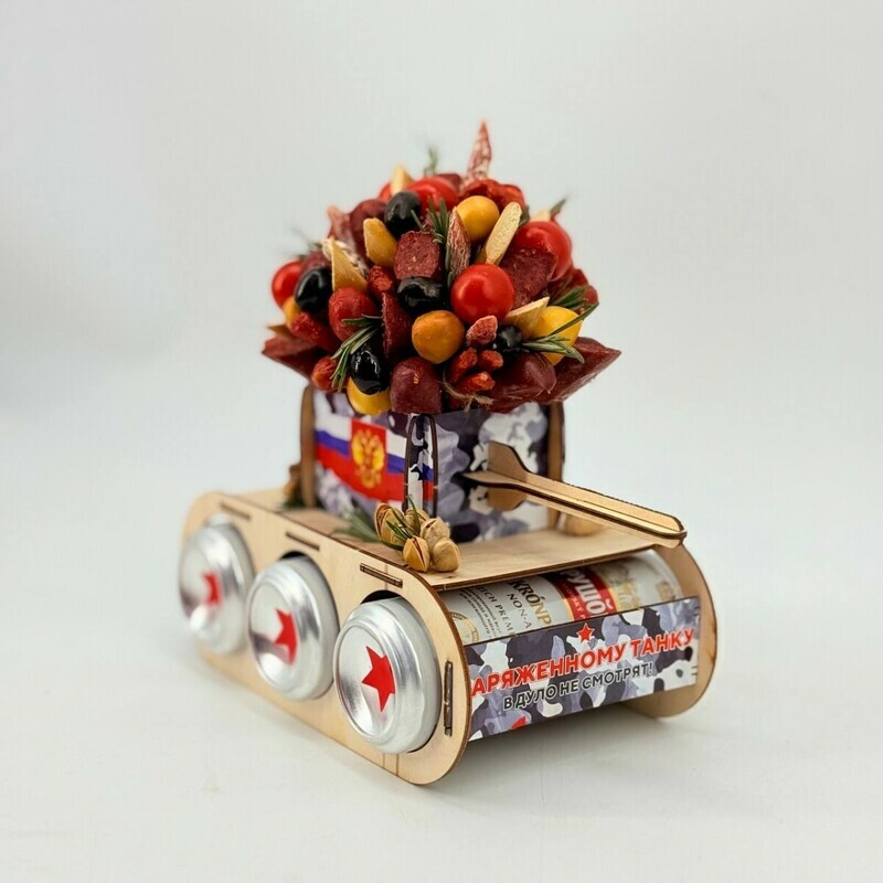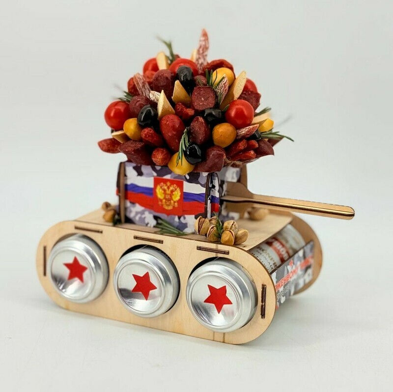 Dekorativnij tank s napitkami bezalkogol_nimi, snekami ili kolbaskami s sirom. Original_nij i kreativnij suvenir i podarok dlya muzhchin, voennih, soldat ili lyubitelej voennoj tehniki. Takoj podarok budet 100% popadaniem: Podarok dlya lyubitelej igri "Tanki" v pervuyu ochered_. Pover_te, vostorg ot takogo podarka garantirovan. Otcenyat takoj podarok po dostoinstvu. Dlya teh, kto sluzhil v tankovih vojskah. Podarok dlya muzhchin. Papi. Brata. Druga. Parnya. Muzha. Dedushki. Kollegi. Sina. Plemyannika. Vnuka. Znakomogo. Fakticheski dlya kazhdogo. Universal_nij podarok na lyuboj prazdnik: Den_ rozhdenie. Novij god. 23 fevralya Den_ zashitnika Otechestva. YUbilej. 9 maya. 14 fevralya. Dembel_ DMB ili po lyubomu drugomu povodu! Derevyannij tank v bitu mozhno ispol_zovat_ kak mini-bar dlya hraneniya napitkov i snekov.