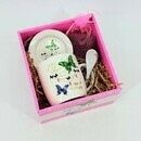 Podarochnij nabor. Keramicheskaya chajnaya para s lozhkoj i elitnij chaj v meshochke. Podarok na 14 fevralya, standart