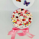 Sladkij buket s zefirom, konfetami Raffaello i marshmellou v korobochke, standart