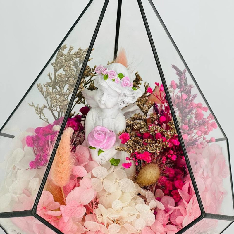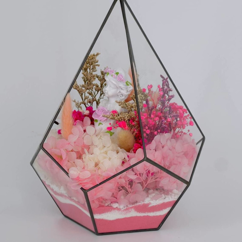 - Nastol_nij florarium kaplya so stabilizirovannimi tcvetami