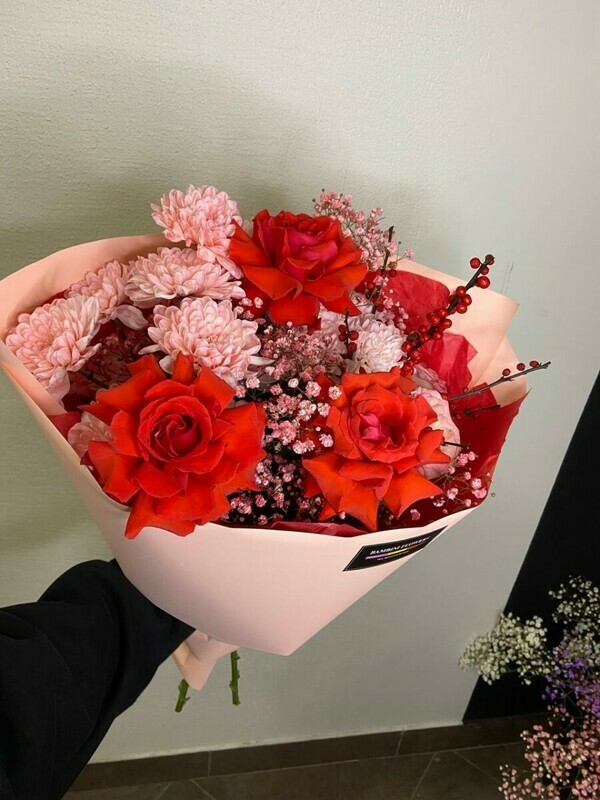 Klassicheskoe sochetanie krasnih ottenkov i shikarnie frantcuzskie rozi stanut yarkim ukrasheniem lyubogo prazdnika
