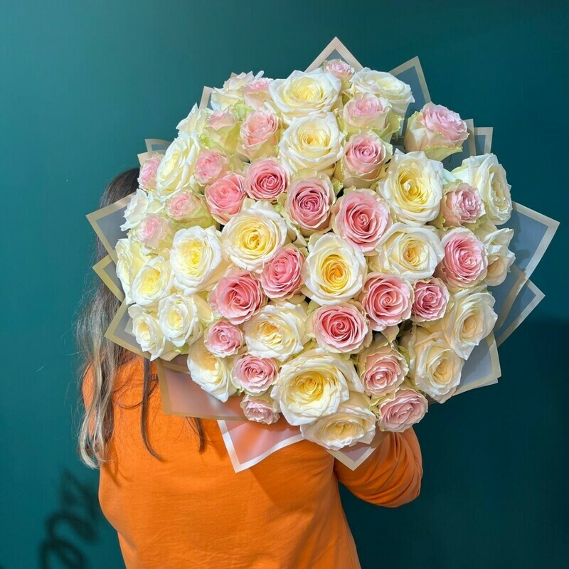 Buket iz kremovih i rozovih roz