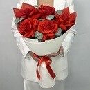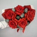 - Buket iz 5 krasnih frantcuzskih roz s evkaliptom