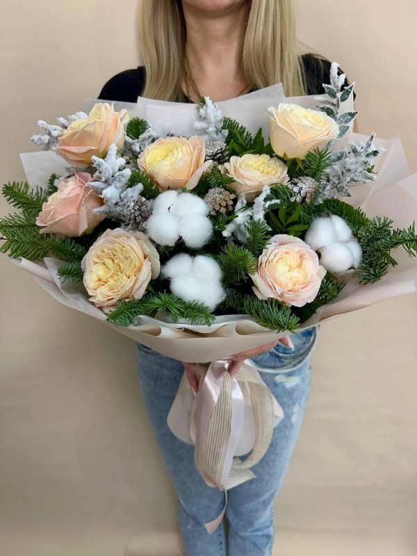 Zimnij buket s pionovidnimi rozami