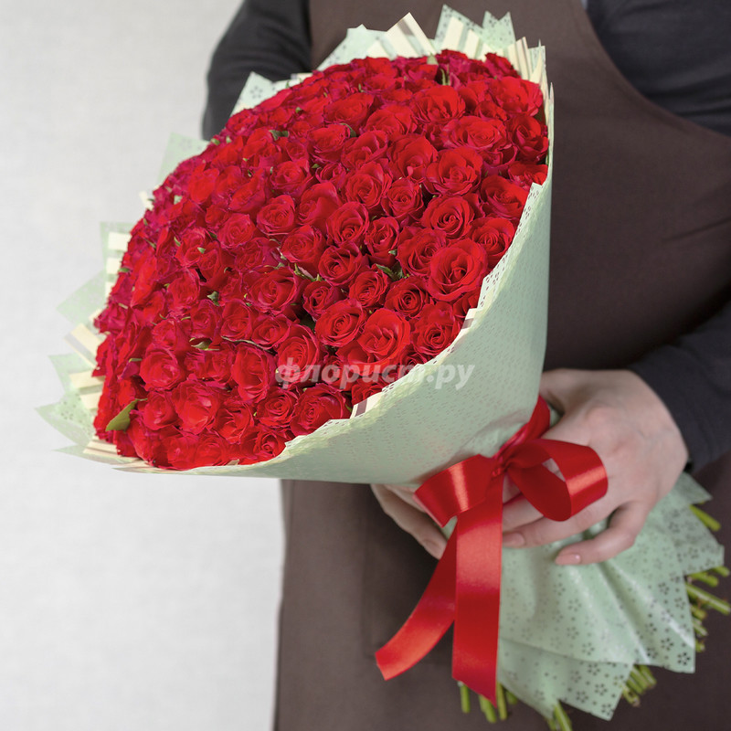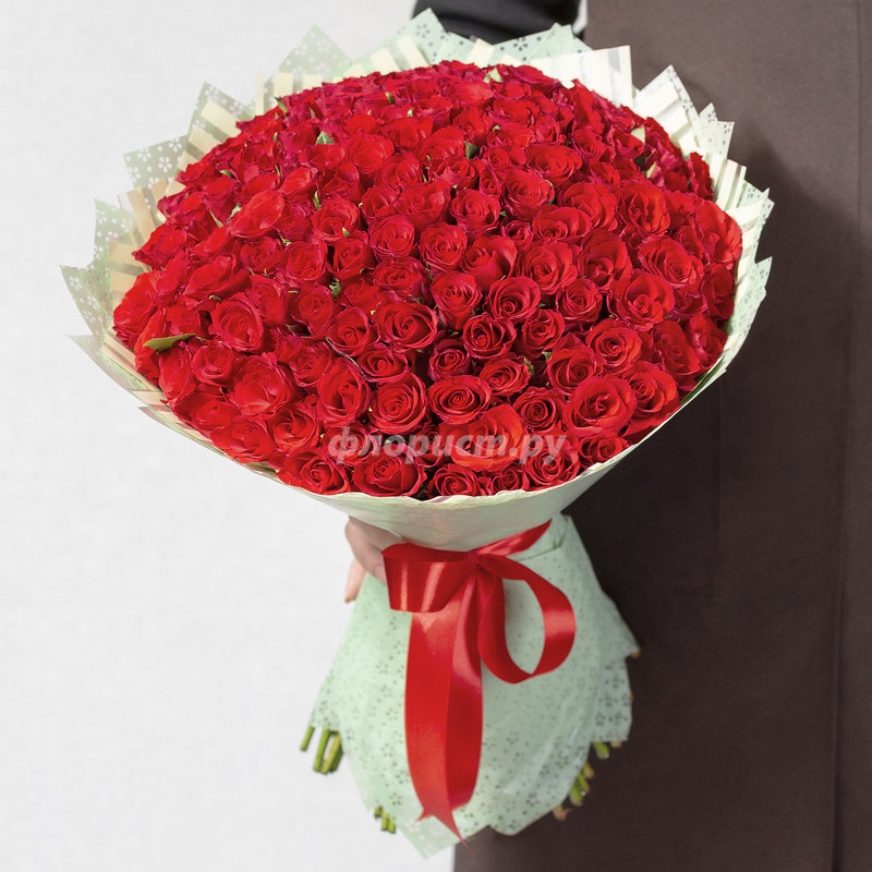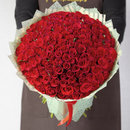 Roses of juicy red color always look impressive, and especially when they are decorated in such neat impressive bouquets. Compositions of 51, 101 and 151 roses look simply gorgeous.
