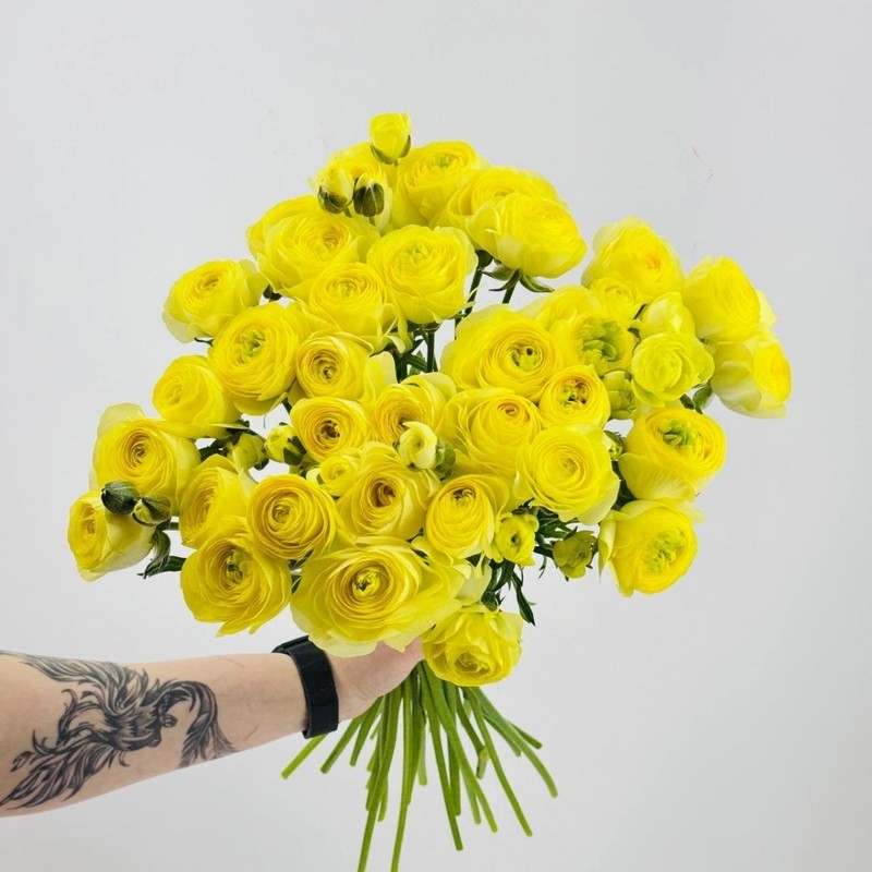 Premial_nie tcveti ranunkulyusi-lyutiki. Buket iz 35 zhyoltih ranunkulyusov