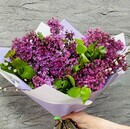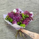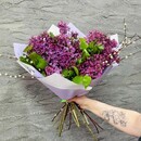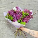 Siren_ krupnaya. Buket aromatnoj sireni v dizajnerskoj upakovke c vetochkami verbi. ZHivie tcveti, standart