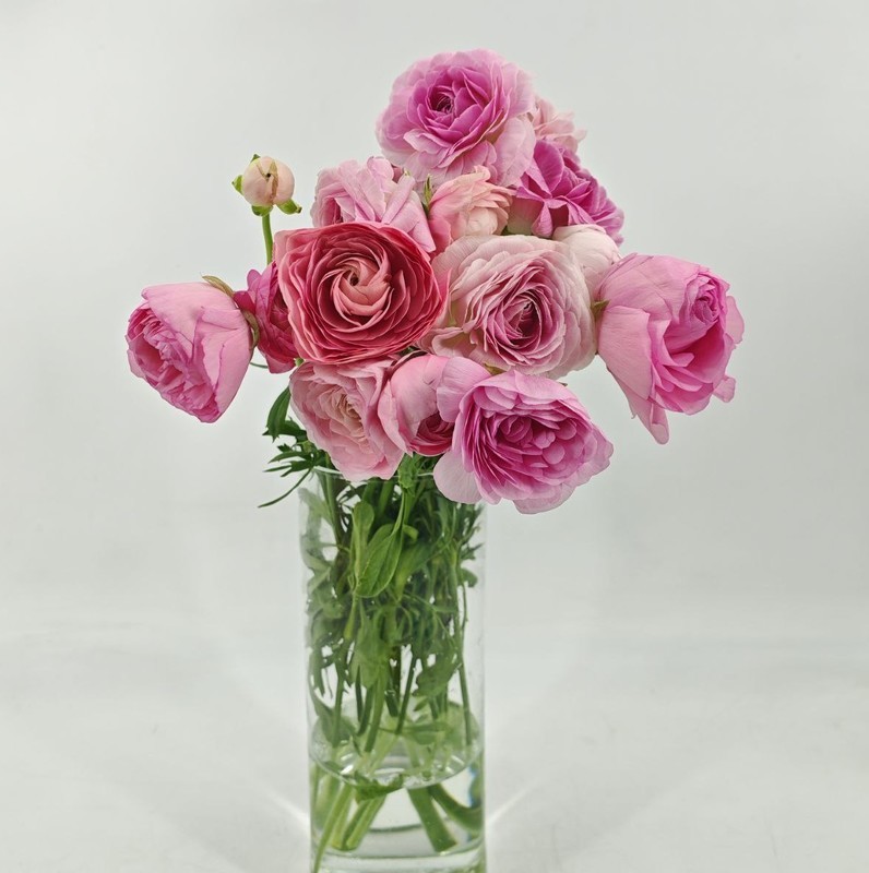 - Buket iz 15 rozovih lyutikov ranunkulyusov. ZHivie tcveti dlya lyubimoj devushki, zhenshini