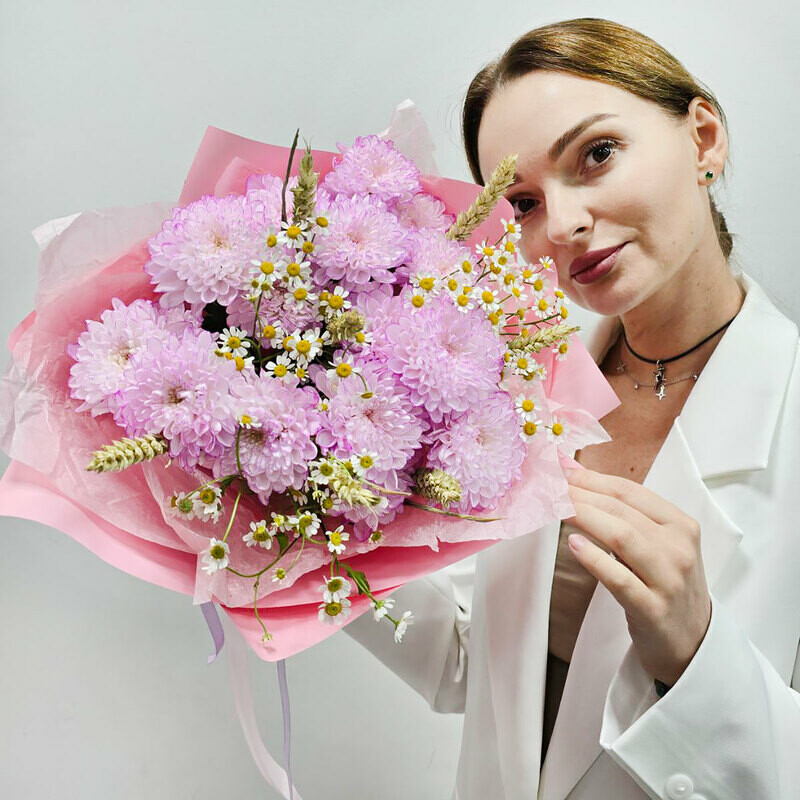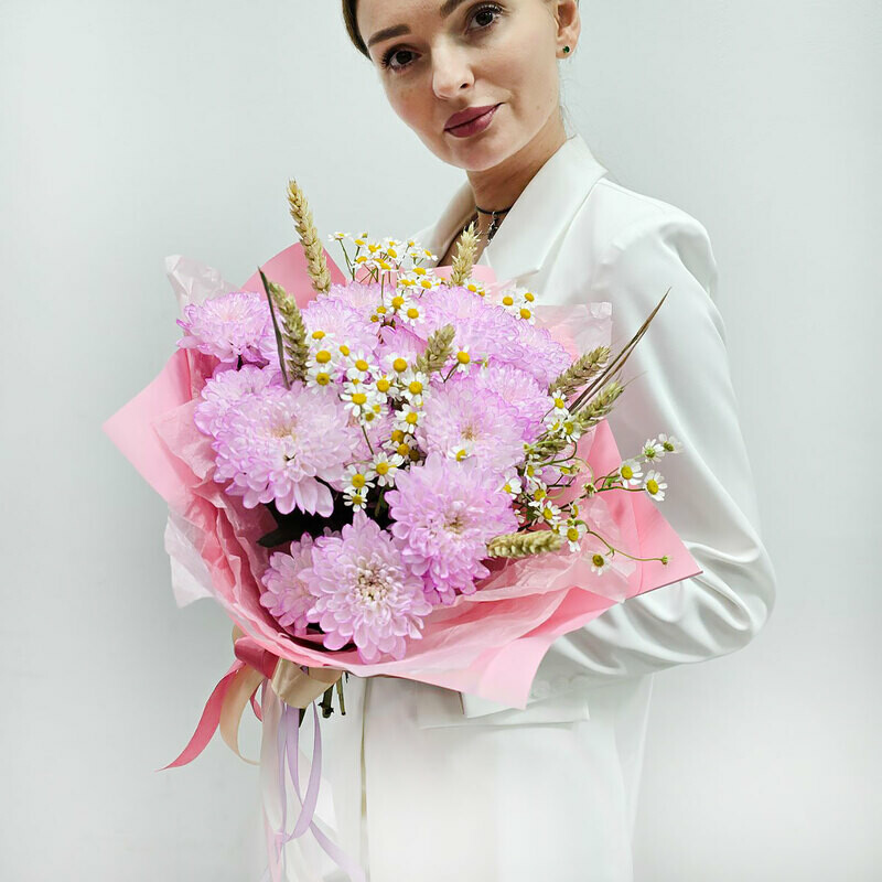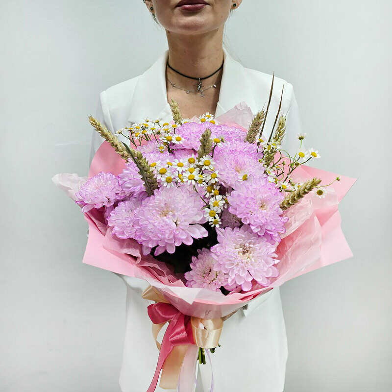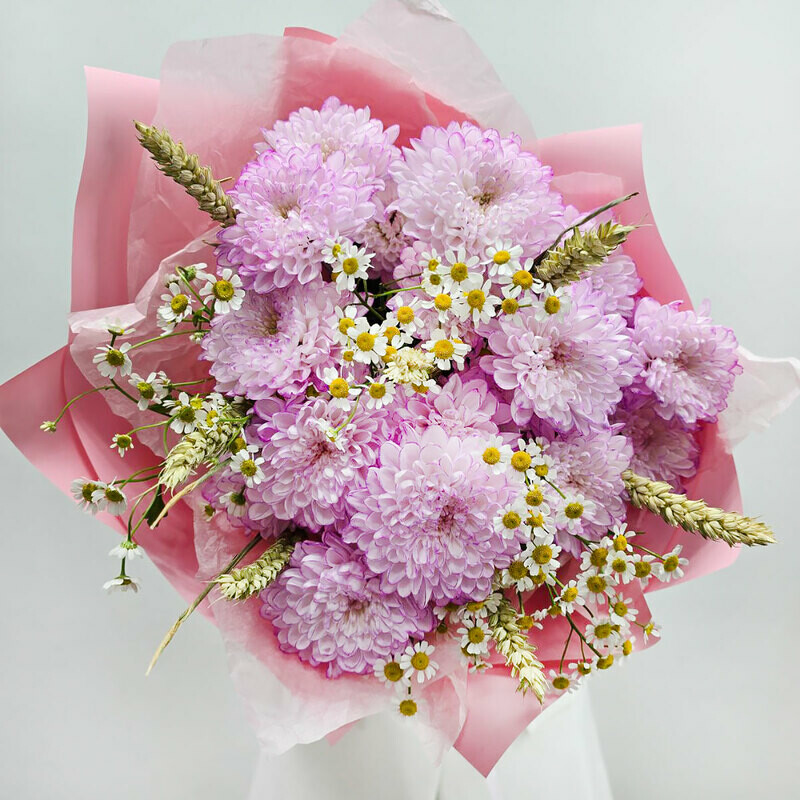 Buket s tcvetnoj hrizantemoj i pshenitcej
