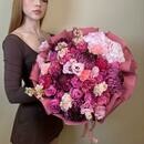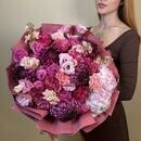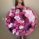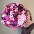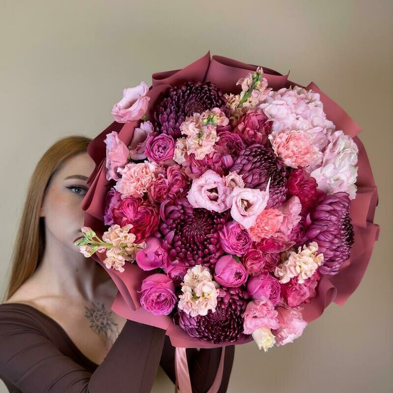 - PREMIUM Avtorskij buket s hrizantemoj bigudi i rozovoj gortenziej