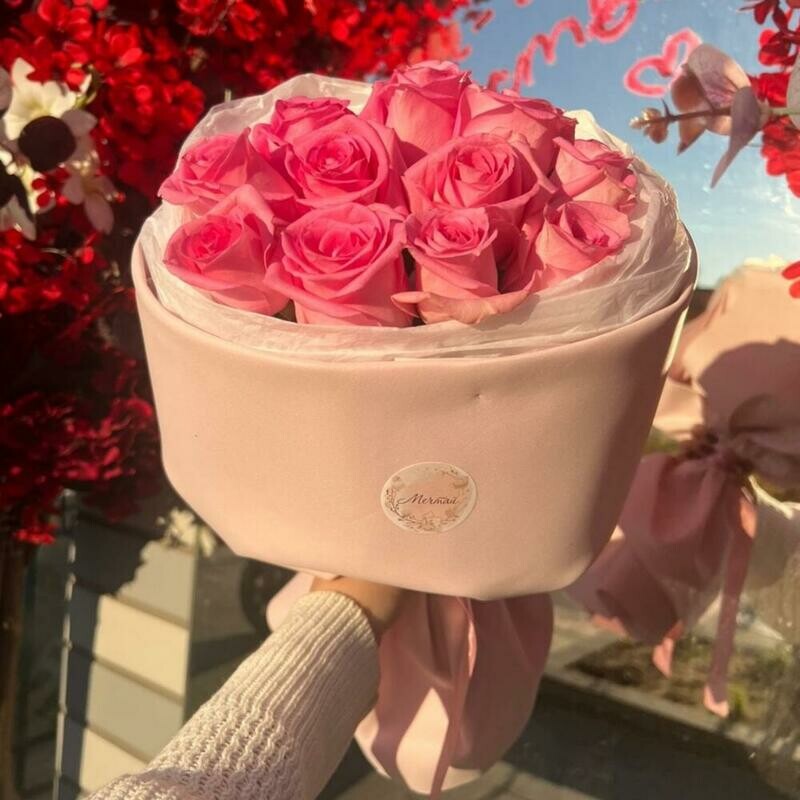Nezhnij buket iz 11 rozovih roz mame, mami, mam, mother, mom, mum, mam, madre, mamochke, mamule, materi.