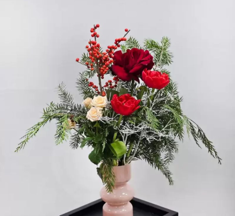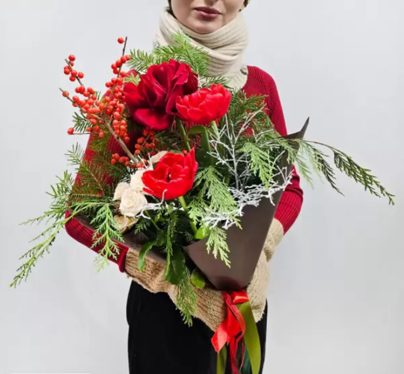 Krasnij mahrovij tyul_pan — simvol vesni i obnovleniya, on sozdaet atmosferu radosti i uyuta. Ego nezhnie lepestki i priyatnij aromat pridayut buketu osobuyu iziskannost_ i elegantnost_.