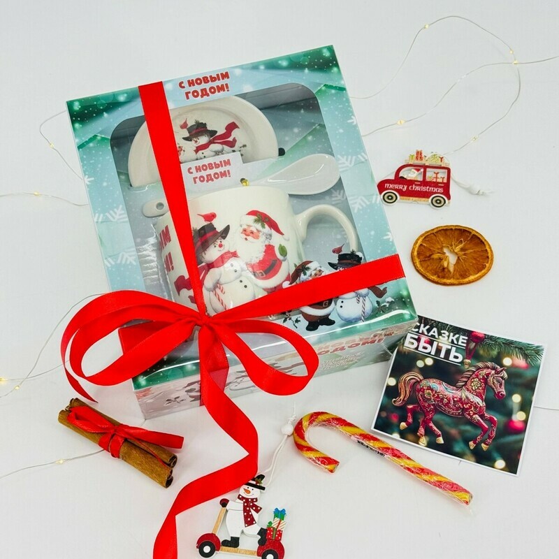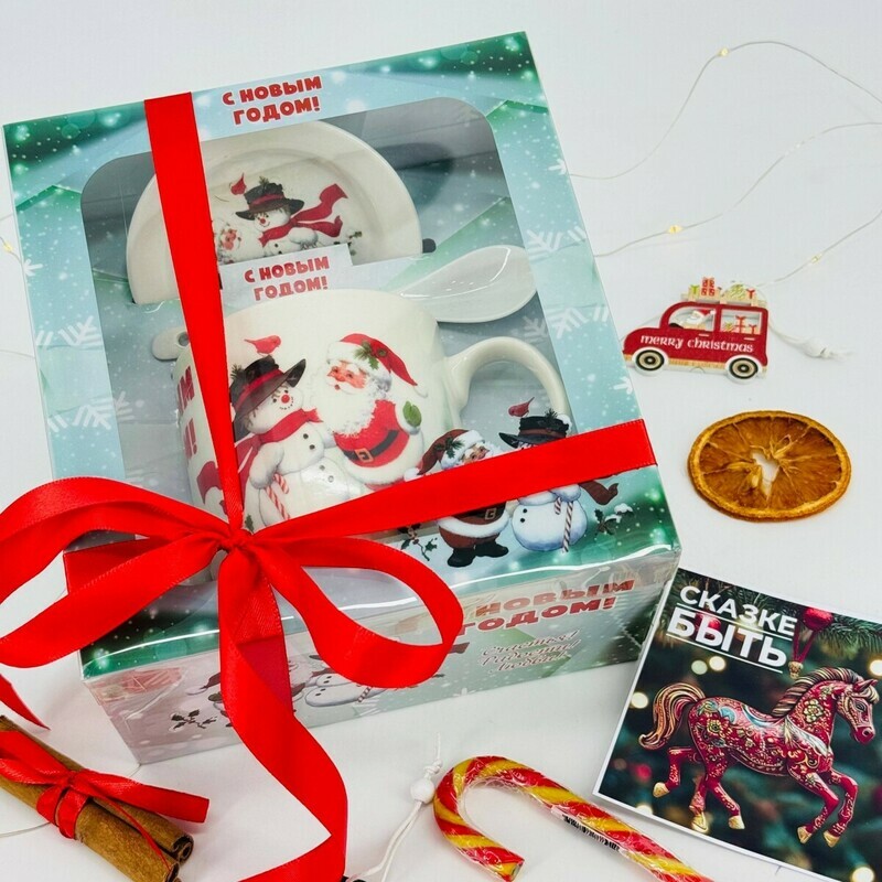 Podarochnij nabor na Novij god kruzhka, blyudtce i lozhka. Novogodnij boks, standart