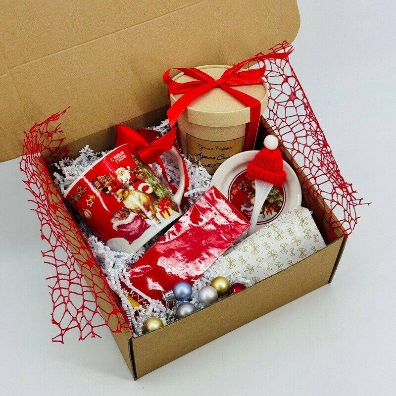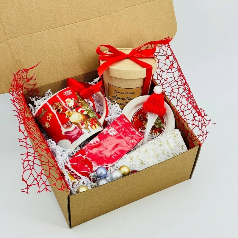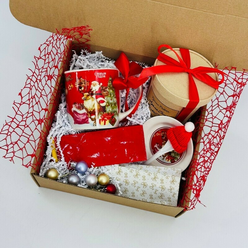 Novogodnij podarochnij nabor. Novogodnyaya kruzhka, chaj elitnij, aroma sashe melts ruchnaya rabota, standart