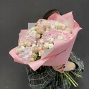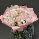 - Nezhnij Buket iz gortenzii s pionovidnami rozami i premium hrizantem